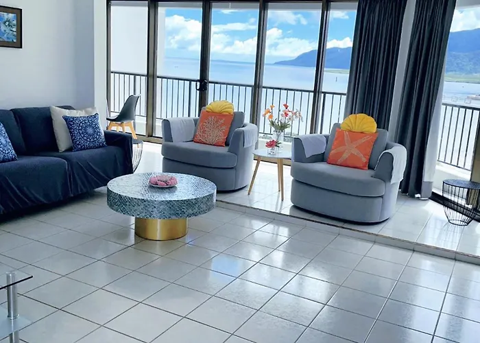 ミコマスケイから250メートル以内のケアンズの中心部に位置するCairns Ocean View In Aquariusアパートは無料駐車場と屋外プールを提供します。 アパートは5人まで収容し、2ベッドルームと2バスルームを備えています。